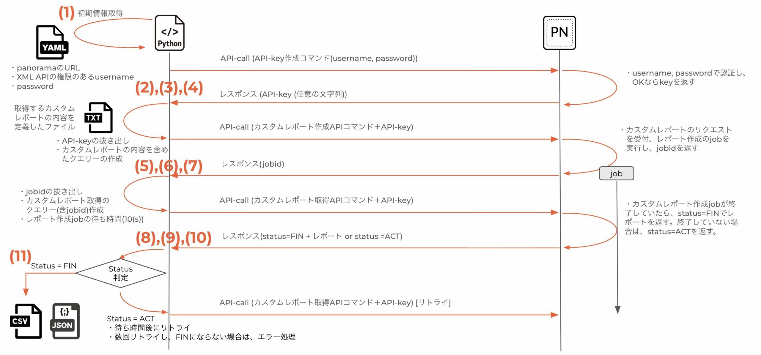 PAN-OS(含 Panorama)のカスタムレポート機能は、スケジュールで1日1回のレポートを作成する利用方法、もしくはWeb-UIのカスタムレポート内の”Run Now”ボタンからオンデマンドで作成する利用方法があります。1時間毎にカスタムレポートを作成したい場合や自動化したい場合、どちらの方法も微妙な感じです… そこで、今回はPAN-OS(含 Panorama)のAPIを使用して、動的にカスタムレポートのデータを取得する方法を試してみました。