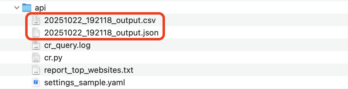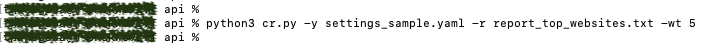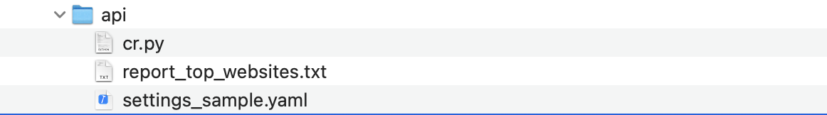 スクリプトファイル(今回の例の場合、cr.py)、カスタムレポートの定義ファイル(今回の例の場合、report_top_websites.txt)、yamlファイル(今回の例の場合、settings_sample.yaml)が用意できたら、同一のディレクトリーに保存します。