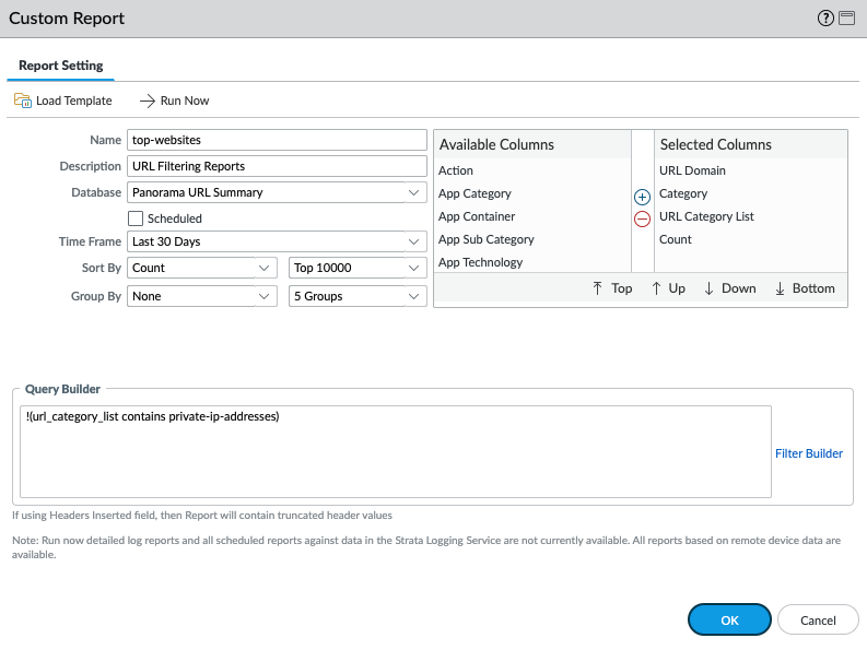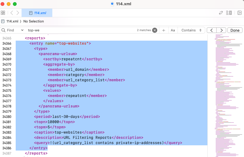 API経由で動的にカスタムレポートを作成する場合、取得したいカスタムレポートの中身をXMLで定義する必要があります。ゼロからXMLでカスタムレポートを定義するのは、かなり高度なので、今回はPanoramaのWeb-UIで取得したいカスタムレポートを作成し、configファイルから該当のカスタムレポートのXML部分を抜き出してます。(カスタムレポートの作成方法は、こちらを参照下さい。)