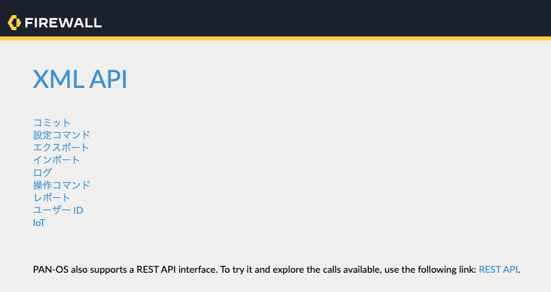 (FW#1の場合、「 https://172.16.1.244/api 」と入力) - 以下の様なXML APIの設定画面に移動します。