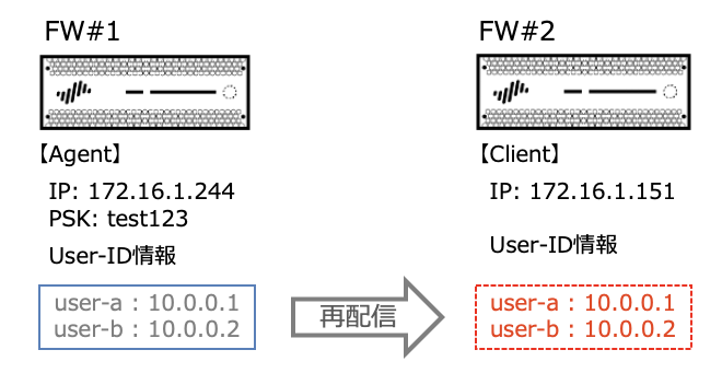 今回は2台のFW間で、User-ID情報を共有してみます。